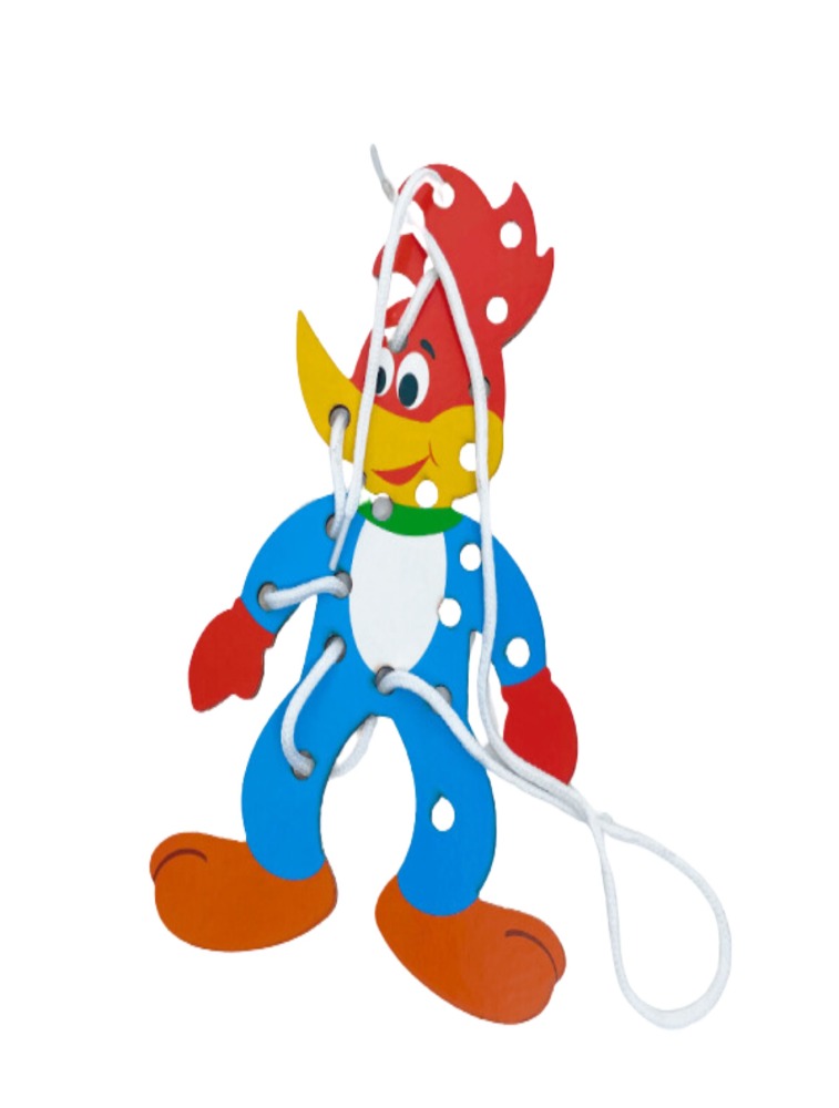 O Alinhavo Pica Pau é um brinquedo educativo que combina aprendizado e diversão, ideal para crianças a partir de 4 anos. Fabricado em MDF resistente, o brinquedo apresenta um palhaço colorido com furos estrategicamente posicionados para que a criança possa passar um cordão, desenvolvendo habilidades motoras finas e coordenação mão-olho.