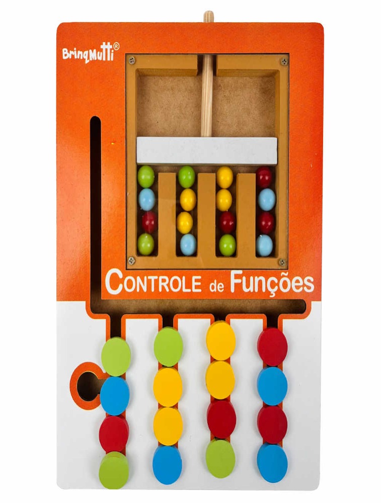 O Jogo Controle de Funções da BrinqMutti é um brinquedo educativo de madeira inspirado na metodologia Montessori, projetado para desenvolver habilidades cognitivas e motoras de forma lúdica.