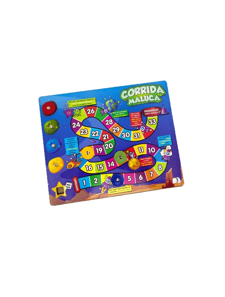 Quem tirar o maior número no dado inicia o jogo, e o primeiro jogador que passar por todos os desafios do jogo e chegar ao final da Corrida Maluca será o vencedor!