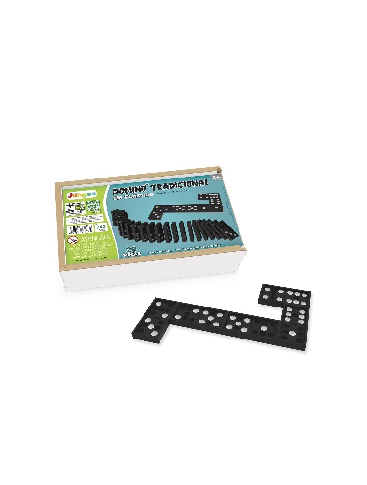 Jogos de dominós tradicional 28 peças plástica com pontos brancos. Espessura da peça 6mm, impressão serigráfica.