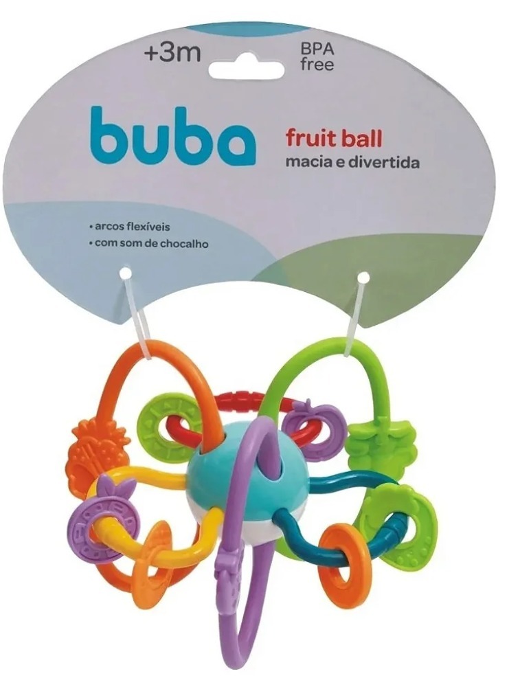 A Fruitt Ball é uma bolinha sensorial super divertida, com textura macia e design inspirado em frutinhas fofas! Leve e fácil de segurar, ela é perfeita para estimular a coordenação motora, tato e percepção visual dos bebês.