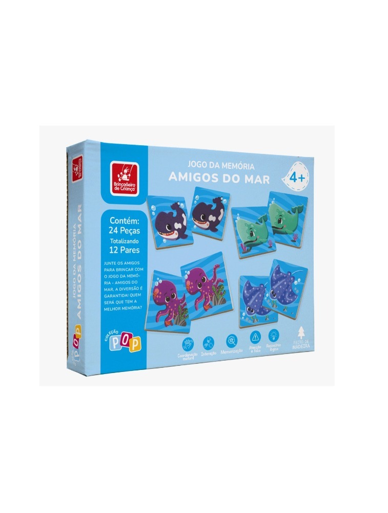 O Jogo da Memória Amigos do Mar é a maneira perfeita de entreter e educar crianças. Desenvolvido pela Brincadeira de Criança, este brinquedo estimula a concentração, a memória e a comunicação dos pequenos de forma lúdica e divertida.