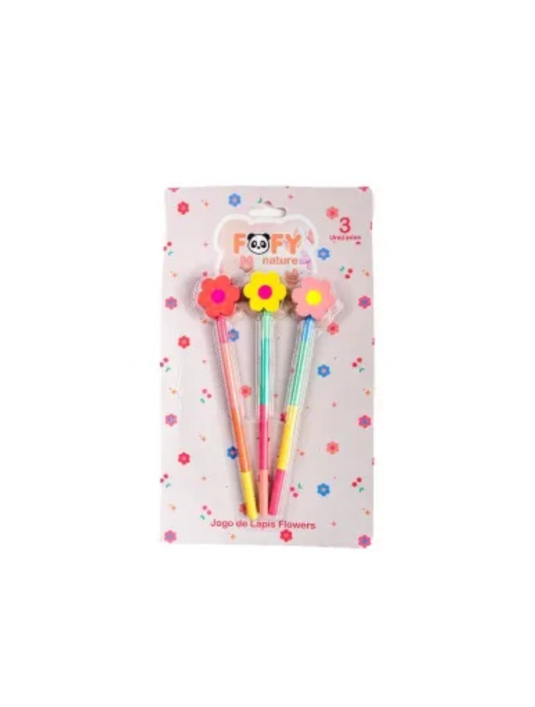O Jogo de Lápis Flowers da FOFY é ideal para uso escolar, escrita, desenhos. Fácil de apontar e de formato redondo, o lápis também é acompanhado de uma linda borracha em formato de flor, que apaga sem sujar ou amassar a folha.