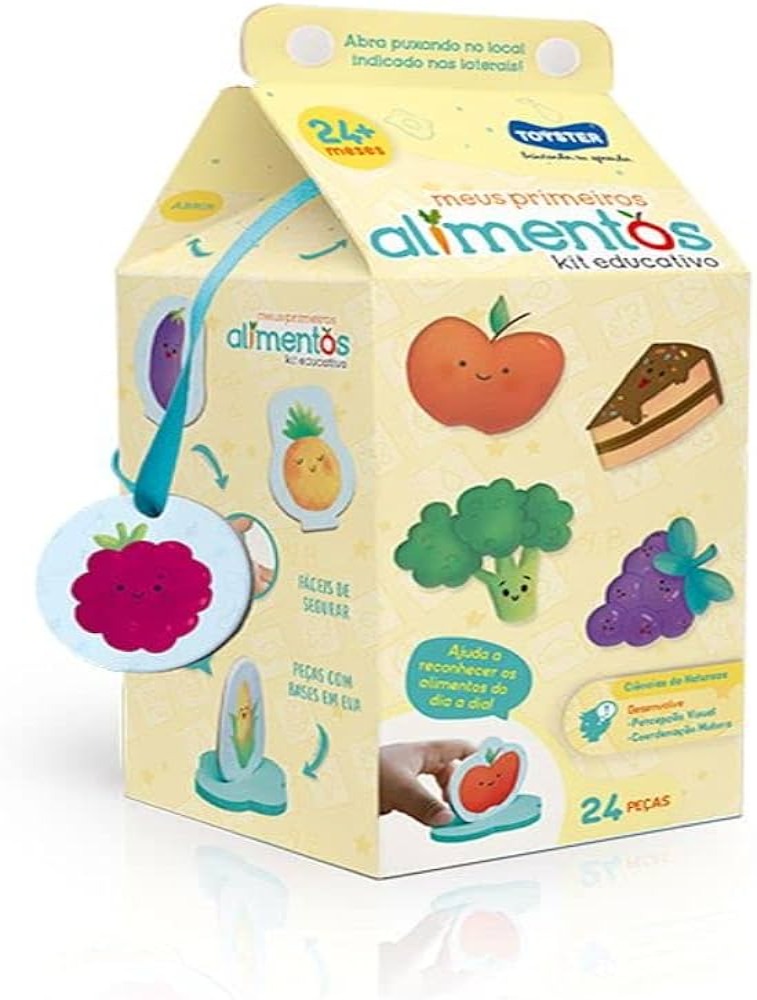Kit com peças ilustradas onde as crianças aprendem brincando sobre os alimentos do dia a dia. Acompanha bases de EVA.