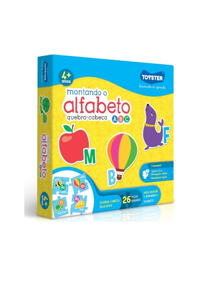 Um quebra-cabeça de 26 peças ilustrado com o alfabeto e e objetos para encaixar. Super colorido é um brinquedo muito divertido que auxilia na alfabetização, fazendo de uma brincadeira um aprendizado fácil e natural, promove uma assimilação rápida e cognitiva do alfabeto. Pode ser usado nas escolas como apoio pedagógico ou em casa com amigos e familiares.