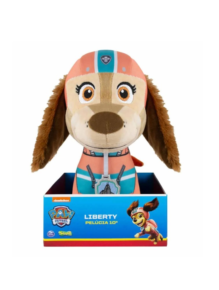 Brinque bastante com uma pelúcia incrível de 25 cm da personagem Liberty da Patrulha Canina. Ajude-a em suas missões e viva grandes aventuras com ela.