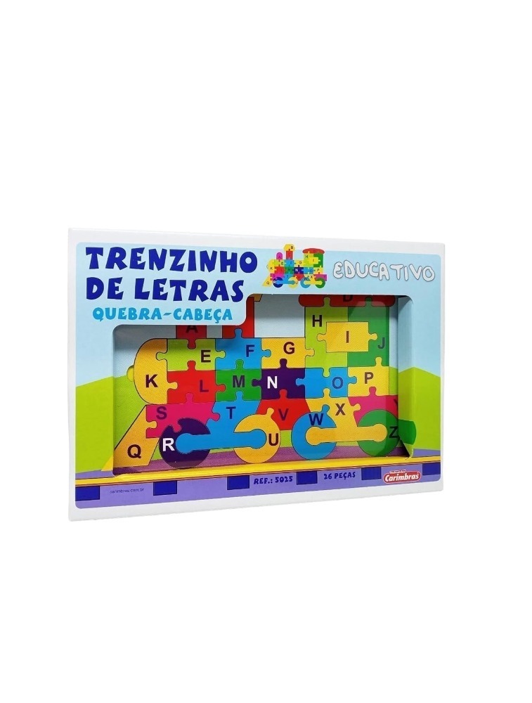 O Quebra Cabeça Infantil Trenzinho de Letras é composto por 01 painel com a ilustração de um trenzinho e com as 26 letras do alfabeto.