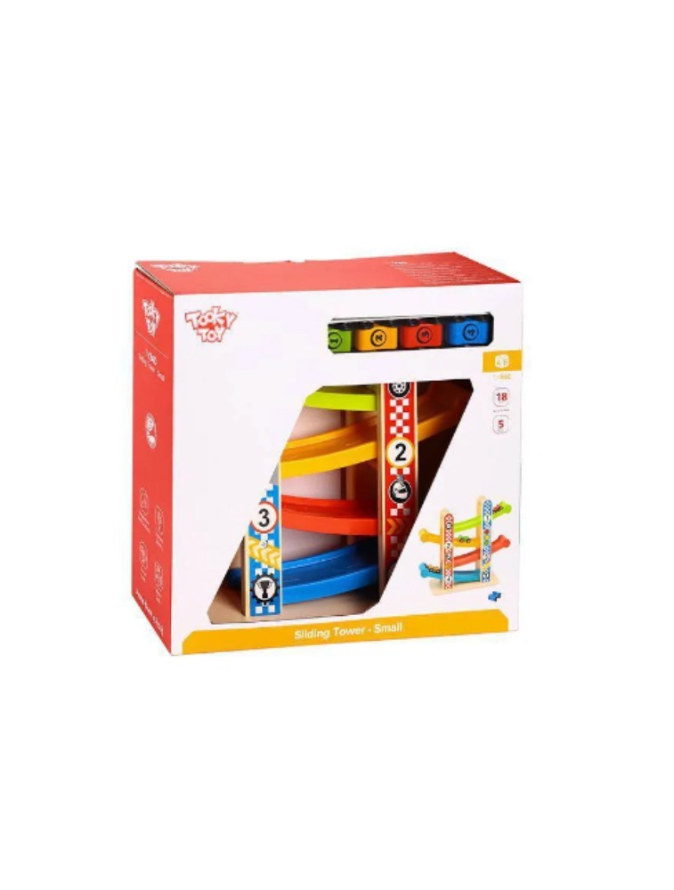 Essa Torre de Carros, vem acompanhada por 4 mini carrinhos que vão deslizando em ziguezague e garantem a diversão das crianças.