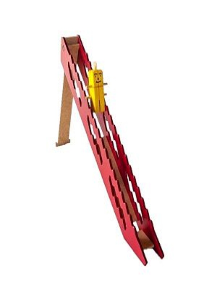É composto por uma rampa com degraus em zigue-zague e um boneco de madeira que desce fazendo cambalhotas. Fabricado em MDF e madeira maciça, o brinquedo é pintado com cores vivas e atóxicas, sendo indicado para crianças a partir de 3 anos. Além de entreter, estimula a coordenação motora, a atenção e o raciocínio das crianças.