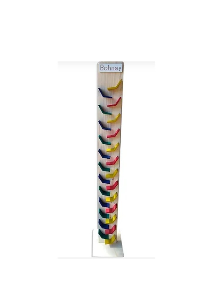 O Brinquedo é feito em pinus maciço. Sendo composto por 1 Torre e 2 carrinhos tipo trenzinho. É multicolorido e por ser um produto artesanal as cores podem sofrer alterações.